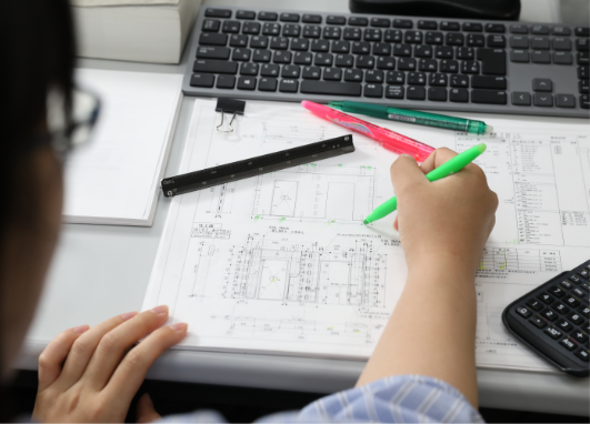 菅原 : 今まで担当した仕事では、工場内の建物や社員寮等の利用者が限定される建物が多かったので、自分の家族や友人が利用できる、または目にすることができるような建物の設計に携わることがてきたらと思っています。
